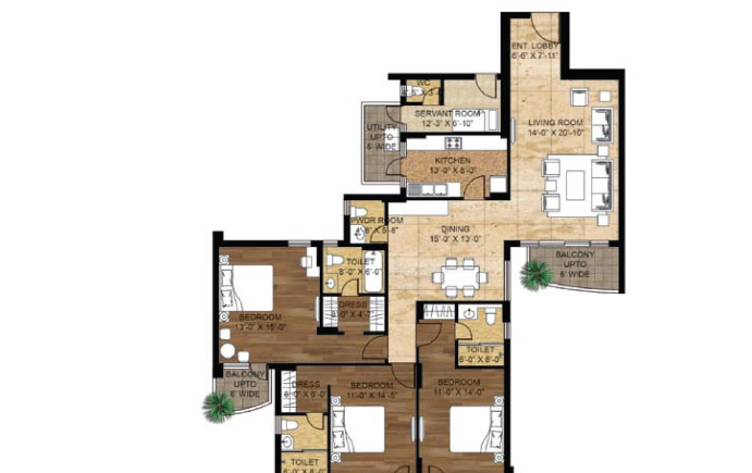 • Size ranging from 2205 – 2450 Sq.ft.